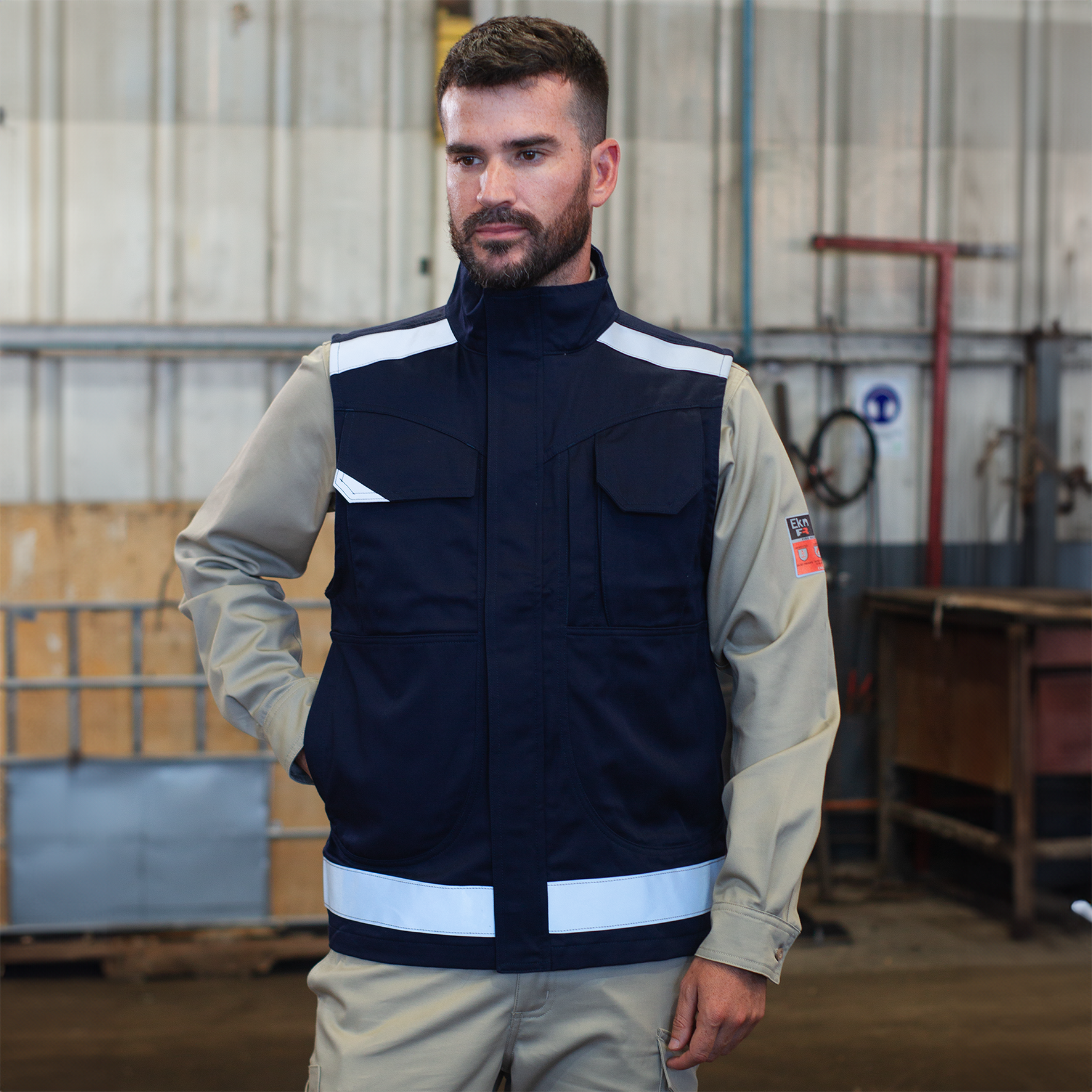 Bolsillo de radio, Diseñado para sostener radios de comunicación. Bolsillos con cierres, Aseguran la seguridad de los objetos almacenados. Bolsillo mapero en la espalda, Proporciona espacio adicional para mapas u otros documentos. Cuello alto, Brinda protección adicional contra las inclemencias del clima. Cinta reflectante, Mejora la visibilidad en condiciones de poca luz o de noche.El geologo risk combina resistencia al fuego con una protección destacada frente a la acumulación de carga electroestática, evitando la atracción de partículas en suspensión y la emisión de chispas. Ideal para aquellos expuestos a riesgos de explosión y arco eléctrico.